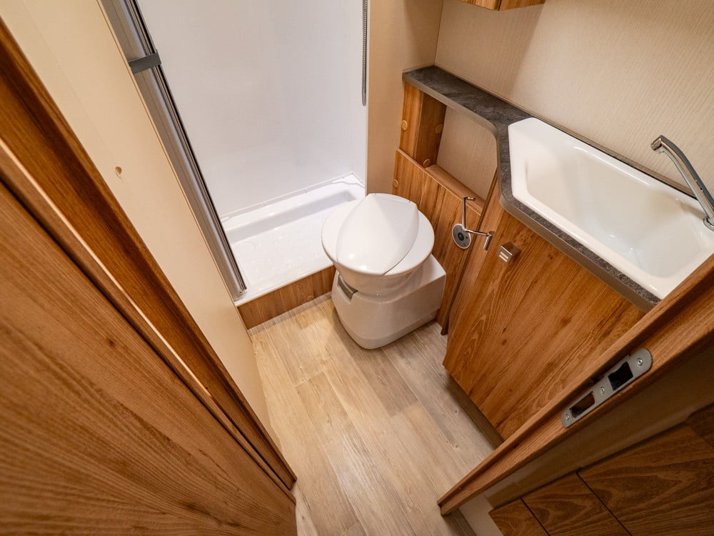 - Steckdosentoilette: 230 V