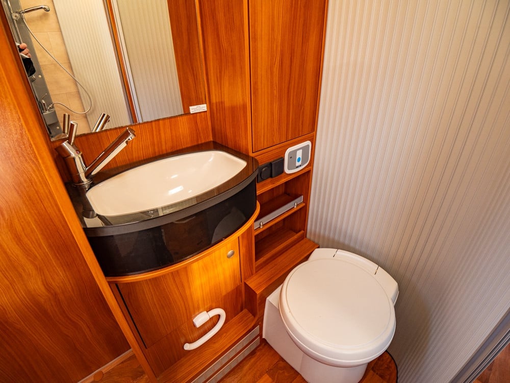 - Outlet toilet: 230V